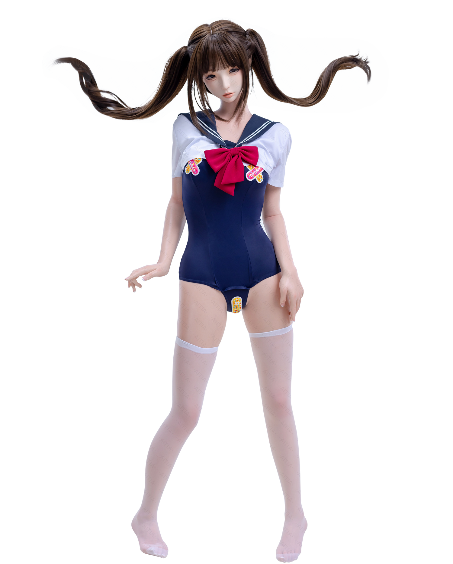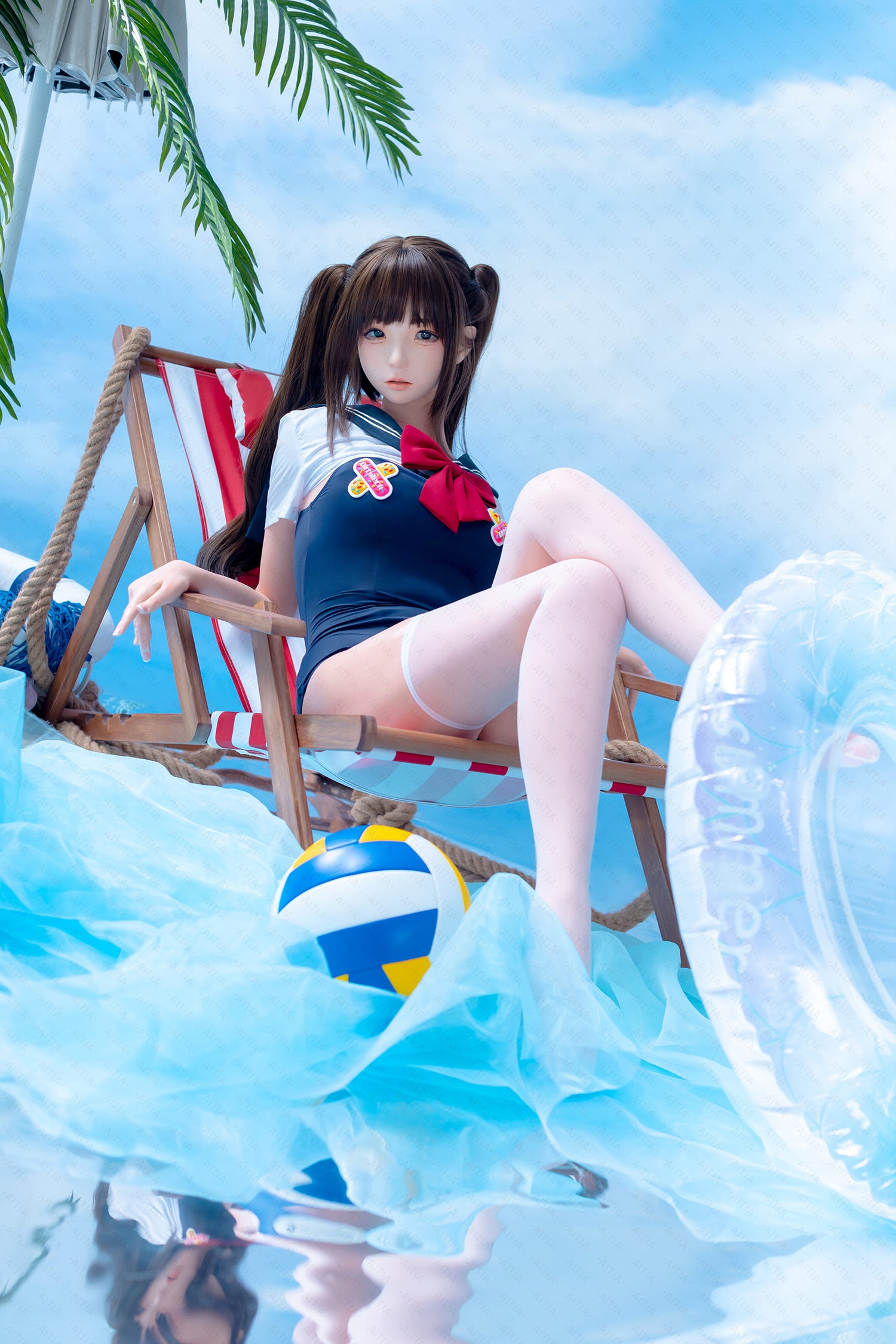 Under the bright summer sky, she looks like a cute, sexy cosplay girl just stepping off a beach party—an ultra-detailed asian sex doll inspired by popular beach photoshoots. Twin ponytails, sailor-style swimsuit and a big red bow faithfully recreate the playful charm of popular cosplayer Chunmomo. Her body features zone-specific softness, giving the chest, waist and thighs different bouncy, realistic feels. As a realistic sex doll, bionic finger bones allow her hands to bend and hold poses, while the bionic movable mouth and delicate makeup keep her facial details vivid and lifelike even up close. At 159 cm, this sex doll is perfect for photos, collection and scene setups—whether standing quietly in the corner as your swimsuit summer girl, or keeping you company on hot nights with a light, shy and heart-fluttering presence.